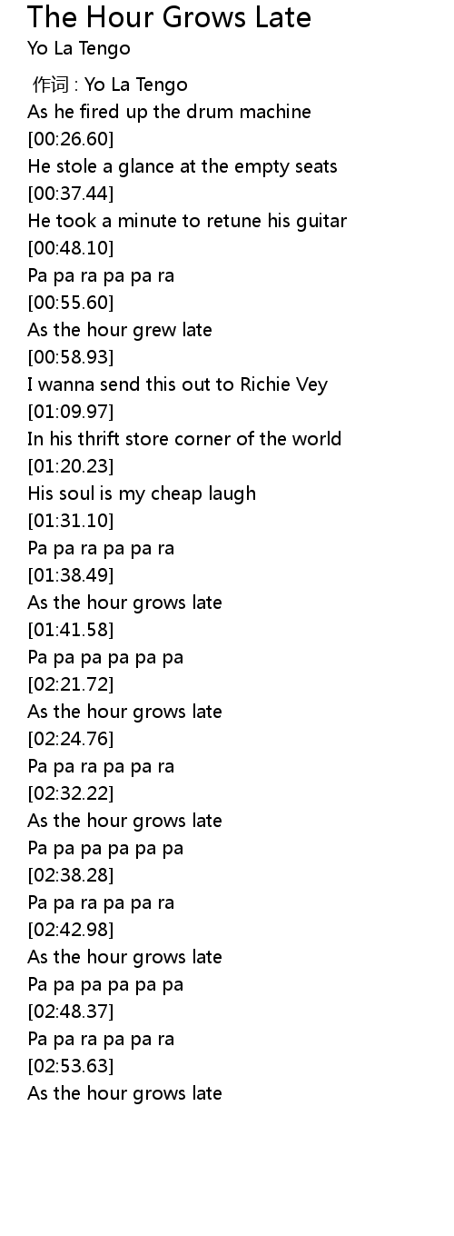 | [00:00.00] | zuo ci : Yo La Tengo |