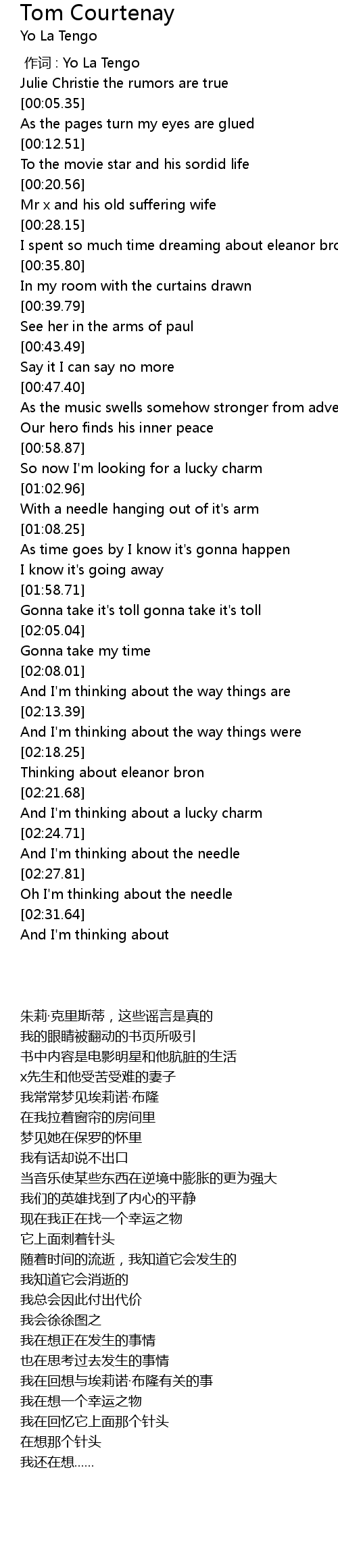 | [00:00.00] | 作词 : Yo La Tengo |