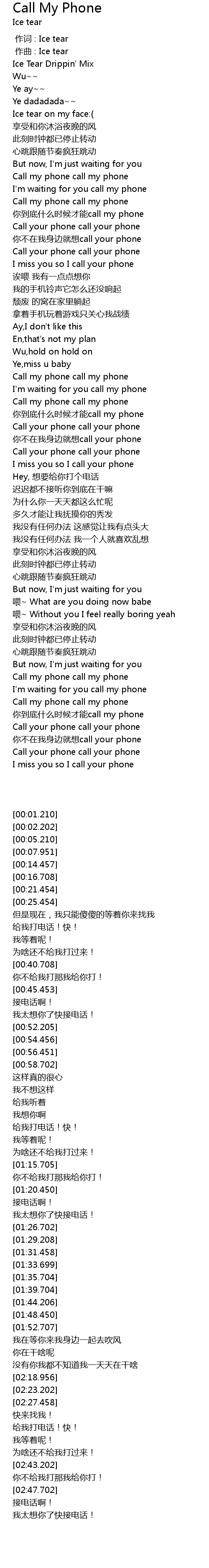 | [02:41.207] | Call my phone call my phone |