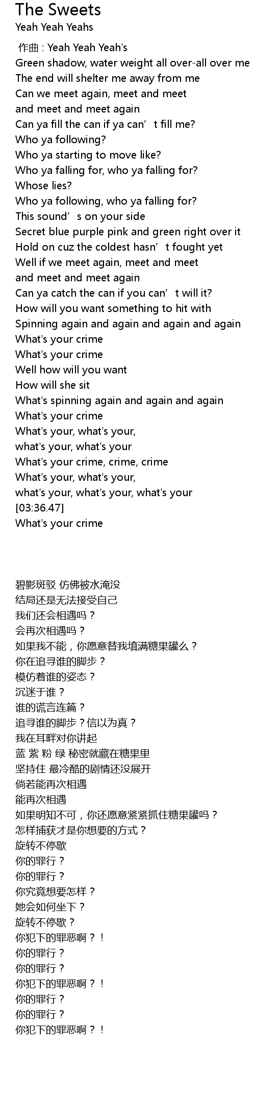 | [00:00.00] | 作曲 : Yeah Yeah Yeah's |