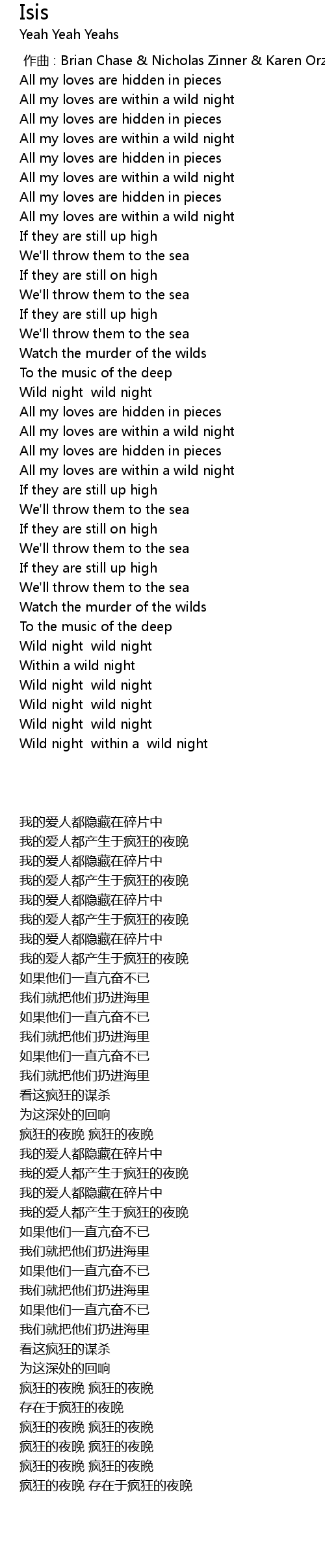 | [00:00.00] | 作曲 : Brian Chase & Nicholas Zinner & Karen Orzolek |