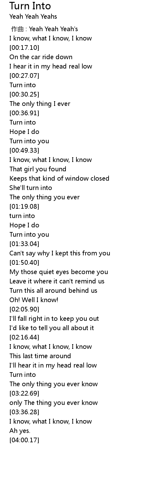 | [00:00.00] | 作曲 : Yeah Yeah Yeah's |