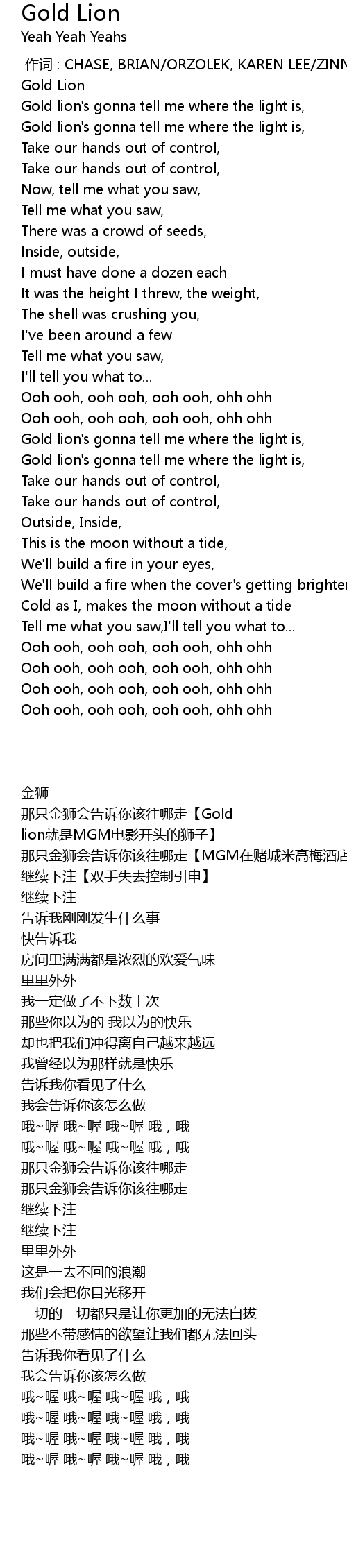 | [00:01.00] | Gold Lion |