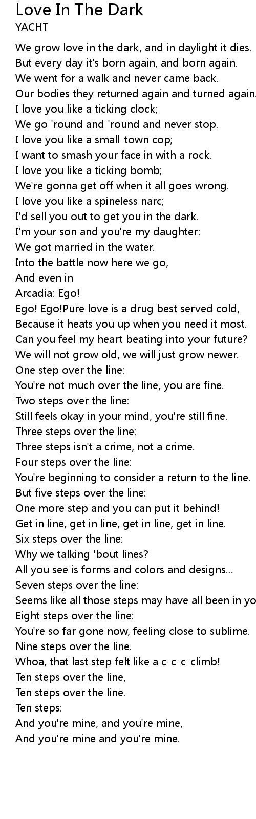 I'd sell you out to get you in the dark. |