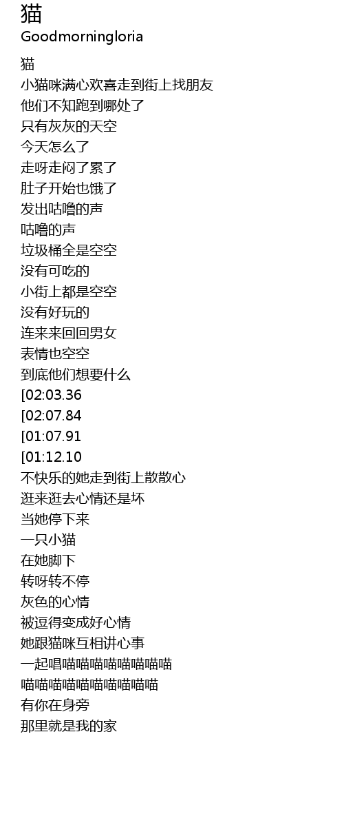 | [01:53.51] | 一起唱喵喵喵喵喵喵喵喵 |