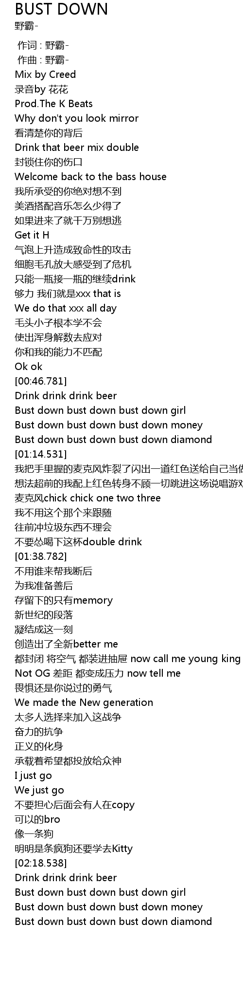 | [01:56.536] | dōu fēng bì jiāng kōng qì dōu zhuāng jìn chōu tì now call me young king |