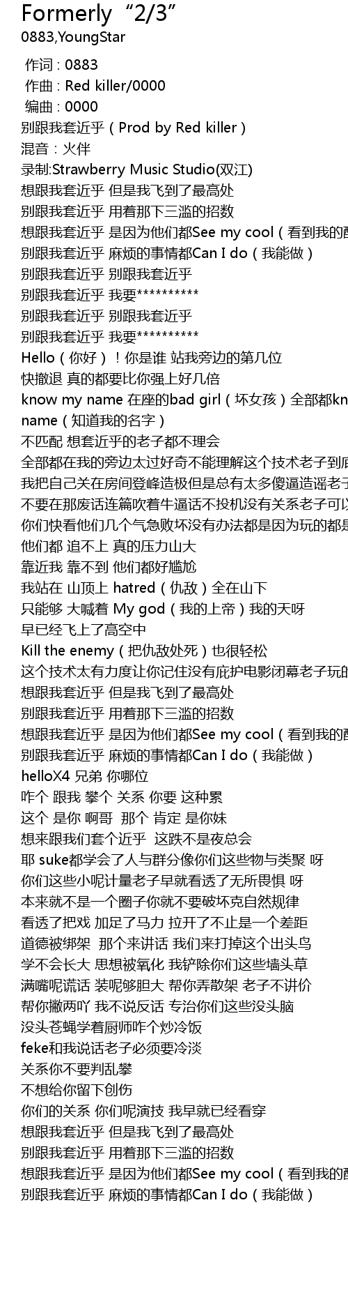 | [00:03.415] | 别跟我套近乎(Prod by Red killer) |