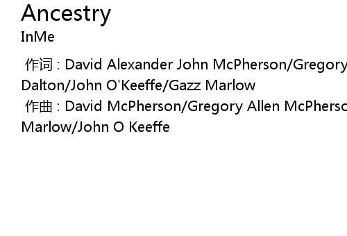 | [00:00.00-1] | zuò cí : David Alexander John McPherson Gregory Allen McPherson Tom Dalton John O' Keeffe Gazz Marlow |