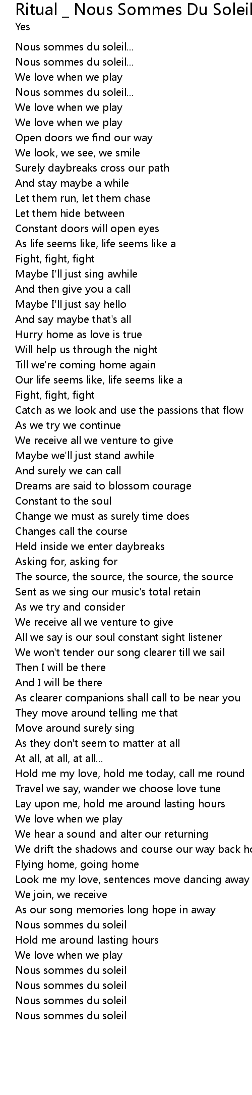 Ritual _ Nous Sommes Du Soleil (LP Version) Lyrics