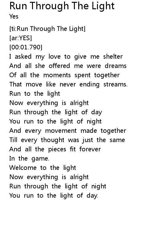 | [ti:Run Through The Light] | |
