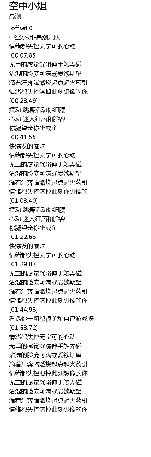 | [00:01.35] | 中空小姐-高潮乐队 |