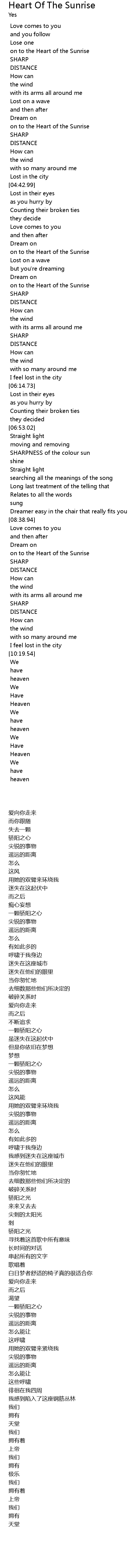 | [03:47.68] | on to the Heart of the Sunrise |