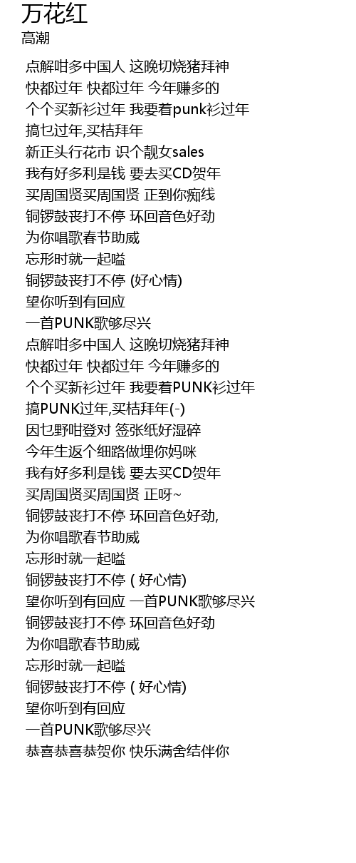 | [00:18.930] | 个个买新衫过年 我要着punk衫过年 |