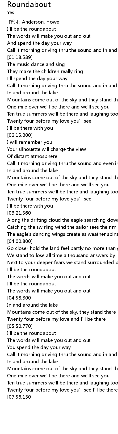 | [07:18.430] | Call it morning driving thru the sound and in and out the valley |