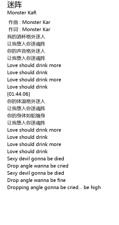 | [00:01.00] | 作词 : Monster Kar |