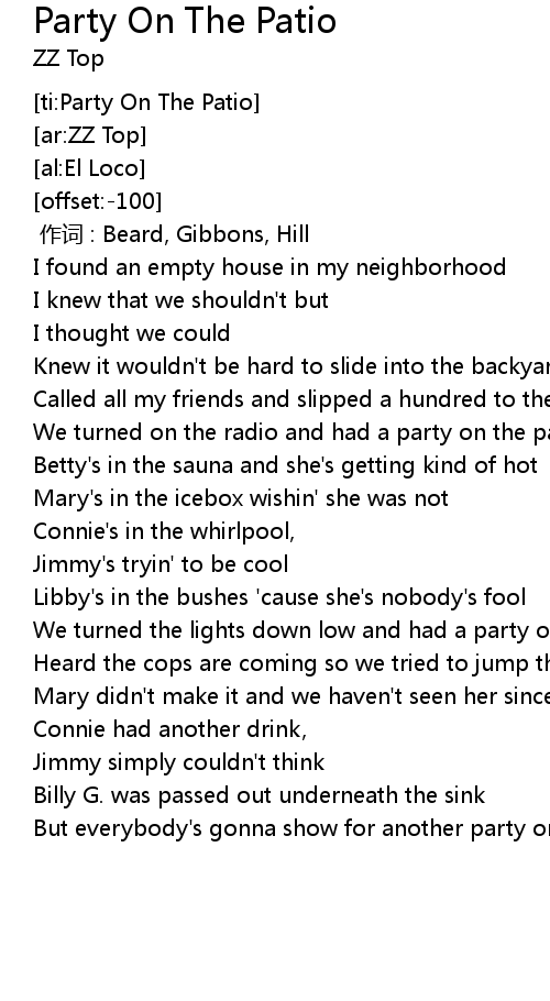 | [ti:Party On The Patio] | |