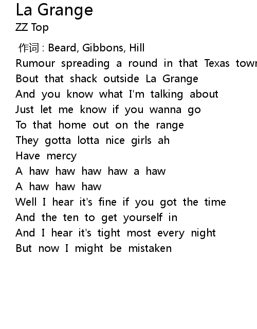 | [00:00.00] | 作词 : Beard, Gibbons, Hill |