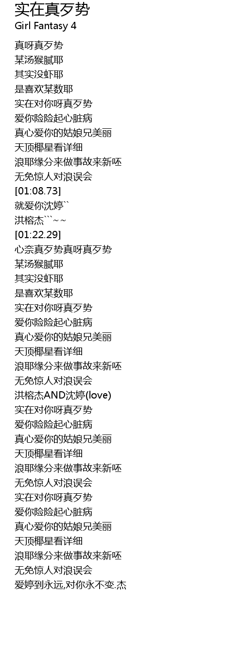 | [02:28.98] | 洪榕杰AND沈婷(love) |