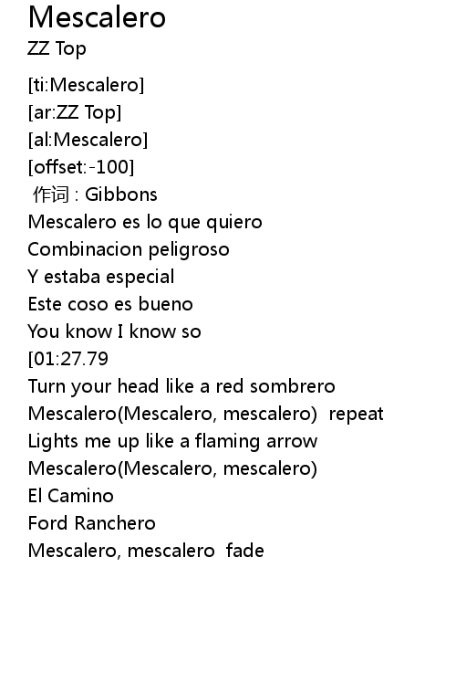 | [01:32.10] | Mescalero(Mescalero, mescalero) |