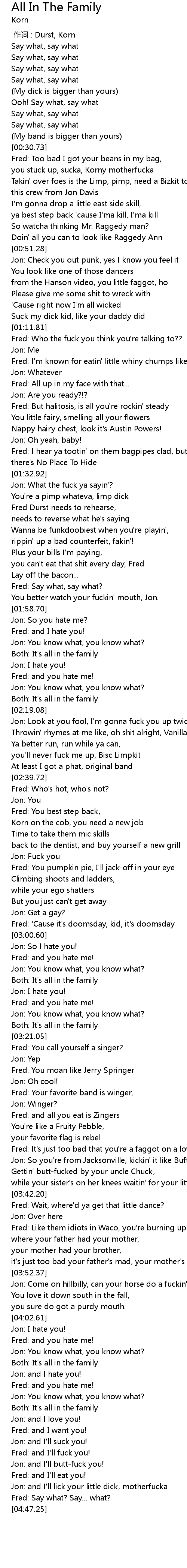| [04:39.65] | Jon: and I' ll lick your little dick, motherfucka |