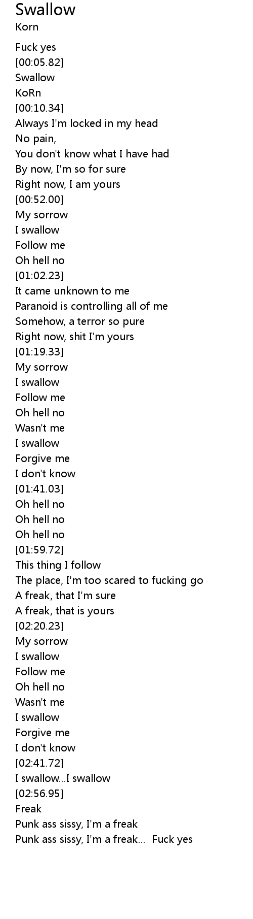 | [03:01.99] | Punk ass sissy, I'm a freak... Fuck yes |