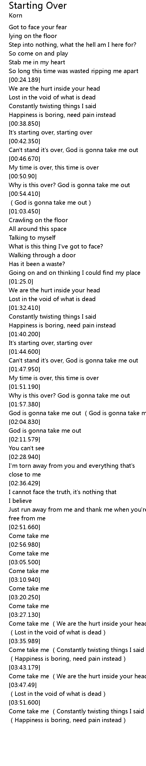 | [03:29.370] | Come take me (We are the hurt inside your head) |
