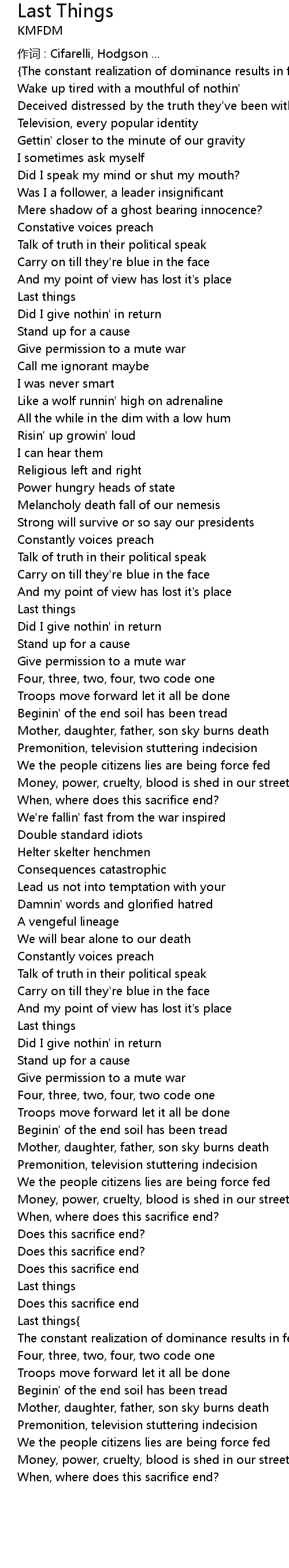 | Does this sacrifice end | |