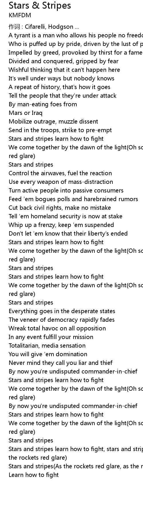 | Stars and stripes learn how to fight, stars and stripes Oh so proudly we hail as the rockets red glare | |