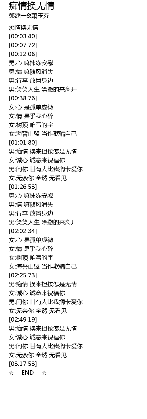 | [00:00.00] | 痴情换无情 |