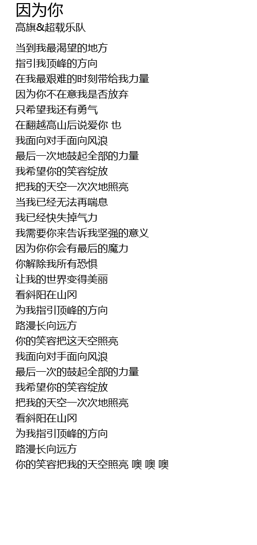 | [00:50.17] | 在翻越高山后说爱你 也 |