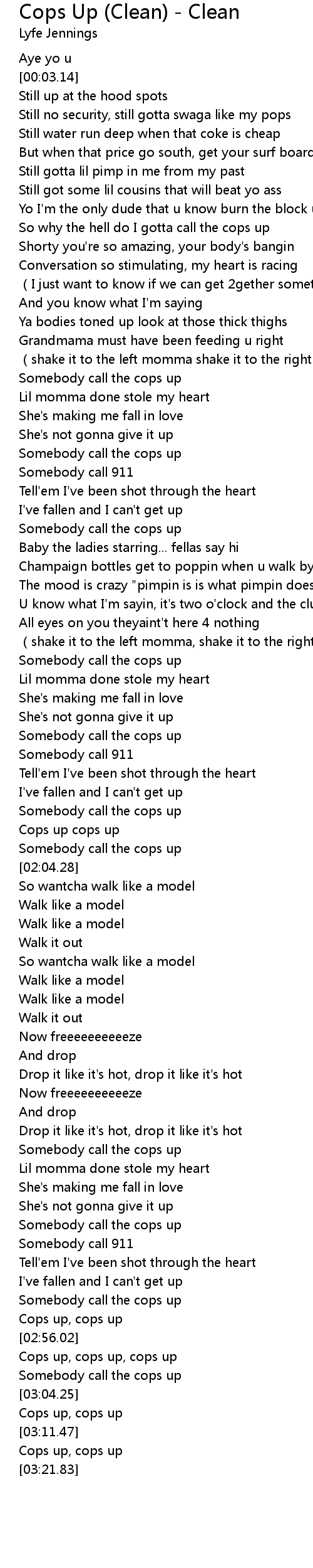 | [00:24.41] | So why the hell do I gotta call the cops up |