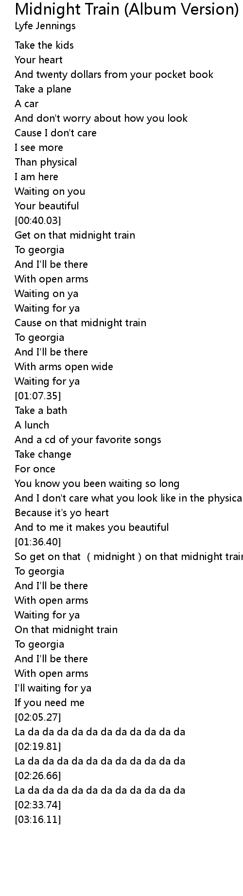 | [01:36.73] | So get on that (midnight)on that midnight train |