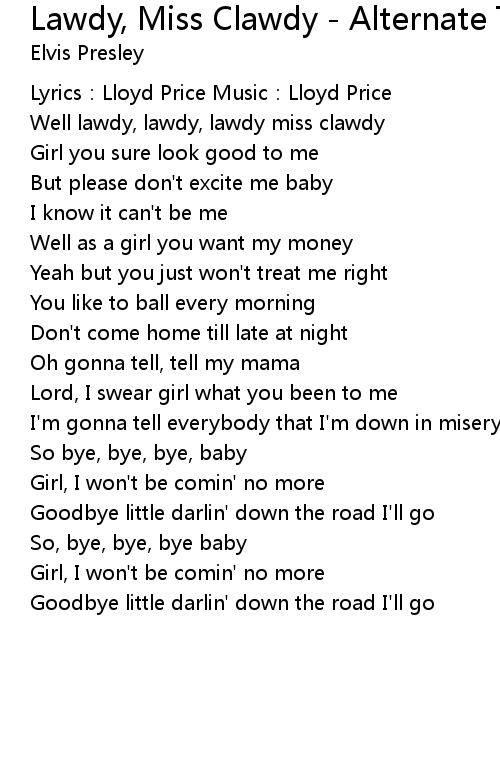 | Song | Lawdy, Miss Clawdy - Alternate Take 1 |