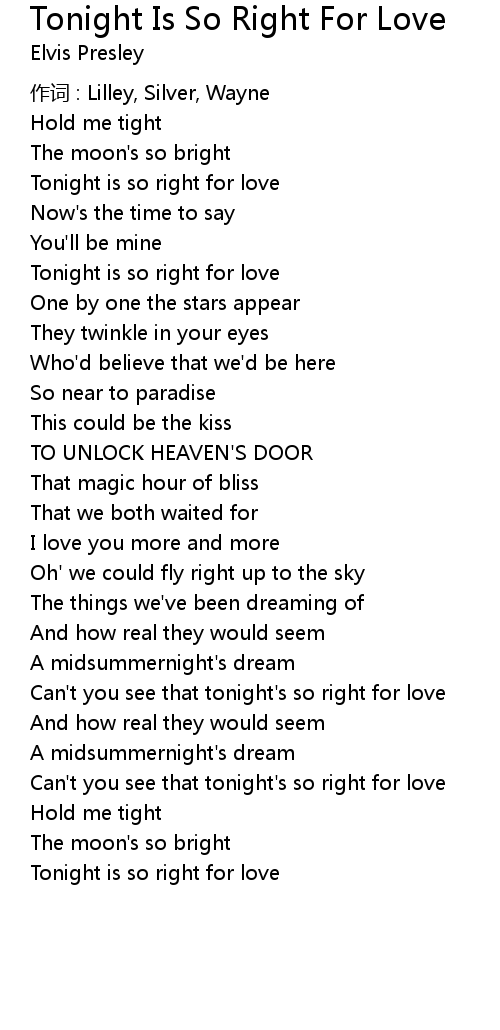 | Tonight is so right for love | |
