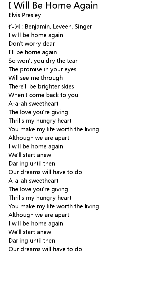 | I will be home again | |