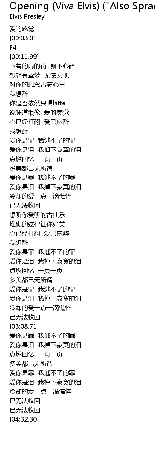 | [00:00.02] | 爱的感觉 |