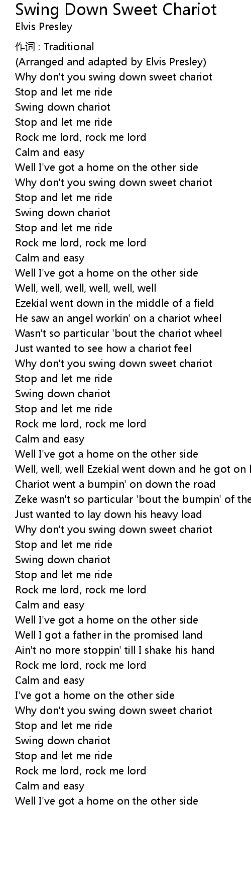 | Why don' t you swing down sweet chariot | |