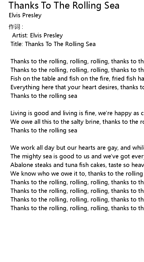 | Thanks to the rolling, rolling, rolling, thanks to the rolling sea | |