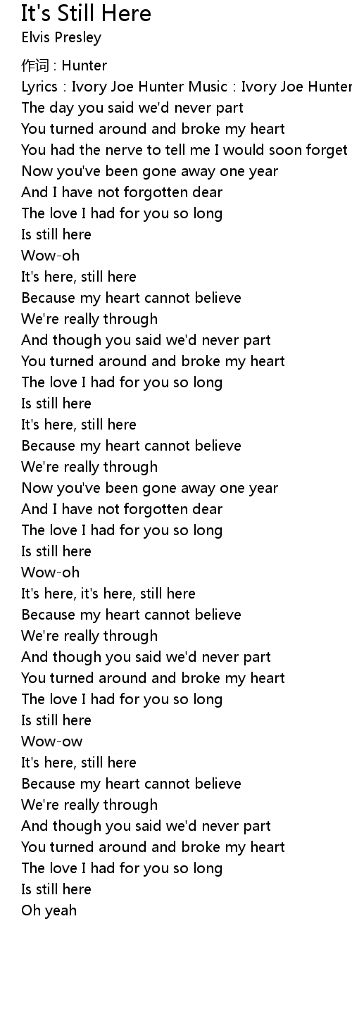 | Lyrics:Ivory Joe Hunter Music:Ivory Joe Hunter | |