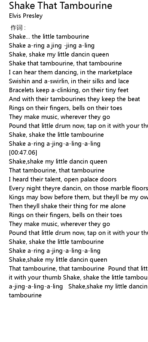 | [00:44.62] | Shake, shake the little tambourine |