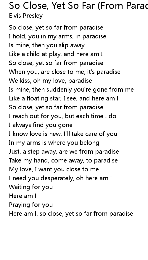 Here am I, so close, yet so far from paradise |