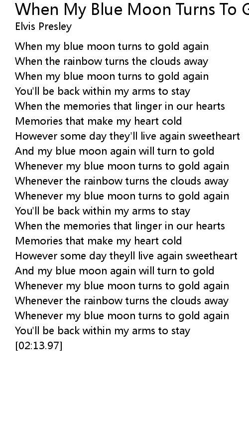When My Blue Moon Turns To Gold Again - 2005 DSD remaster Lyrics