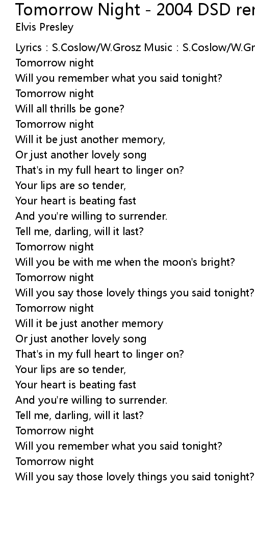 | Song | Tomorrow Night - 2004 DSD remaster |