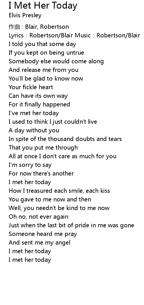 | Song | I Met Her Today |