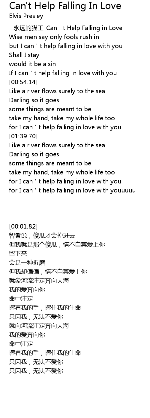| [00:01.82] | -永远的猫王-Can't Help Falling in Love |