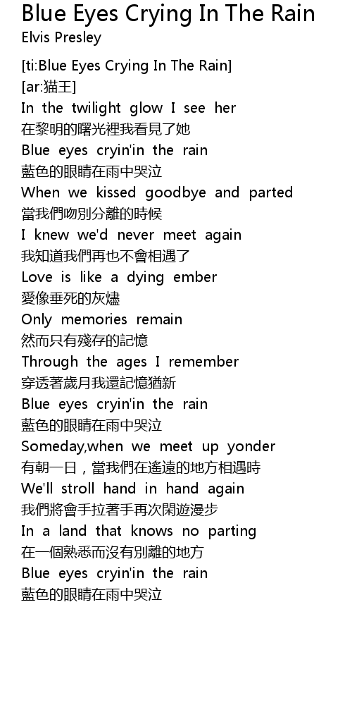 | [02:32.05] | Blue eyes cryin'in the rain |