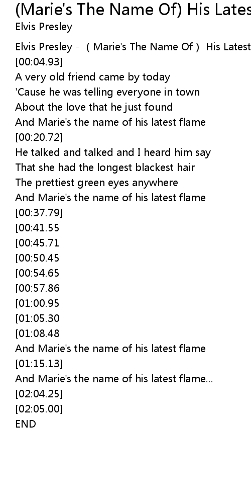 | [00:00.00] | Elvis Presley Marie' s The Name Of His Latest Flame |