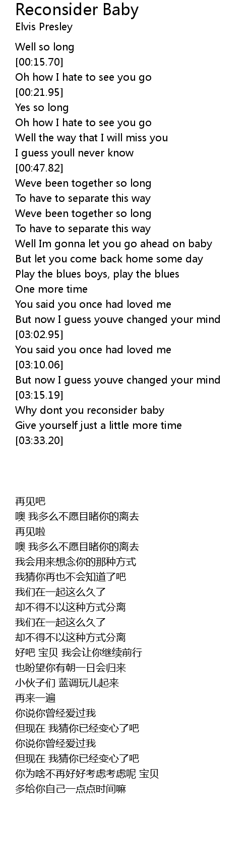 Why dont you reconsider baby |