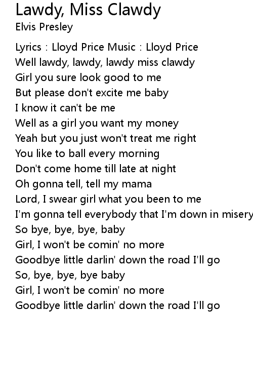 | Song | Lawdy, Miss Clawdy |
