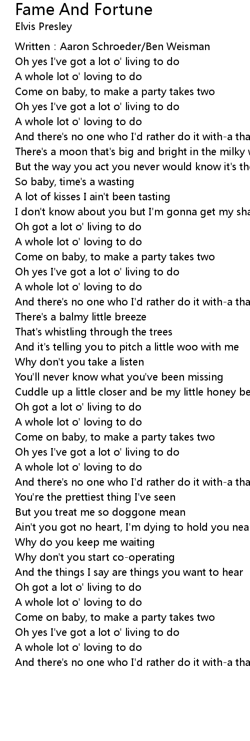 | Song | Fame And Fortune |